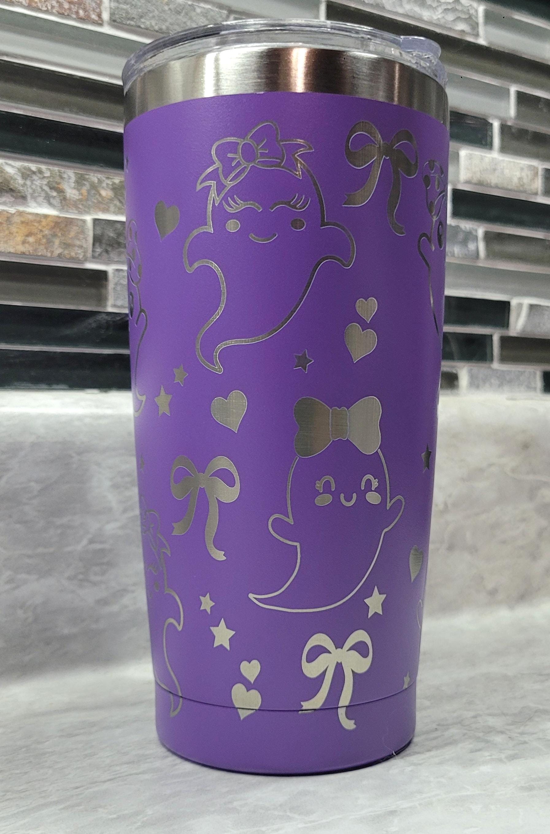 Laser Engraved Ghost Tumbler 20oz Gift, Purple ghost Heart Bow Cup,