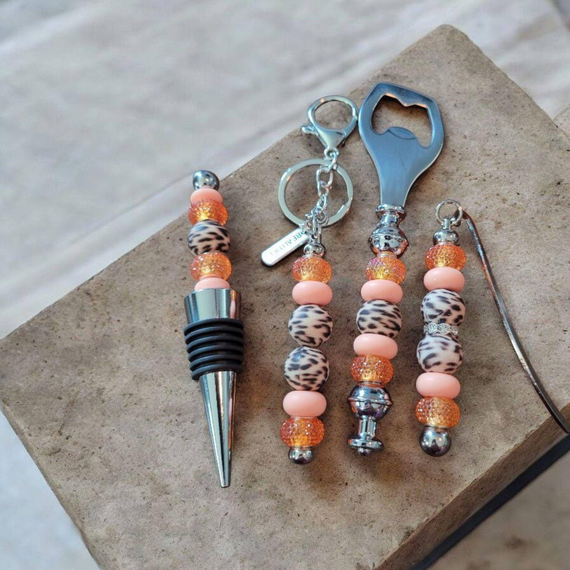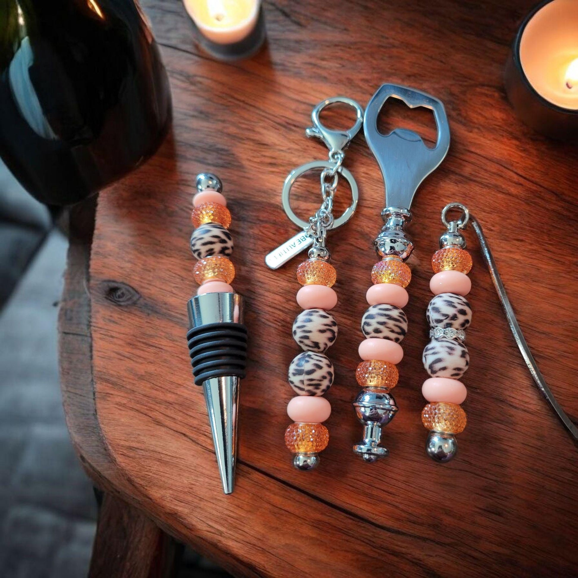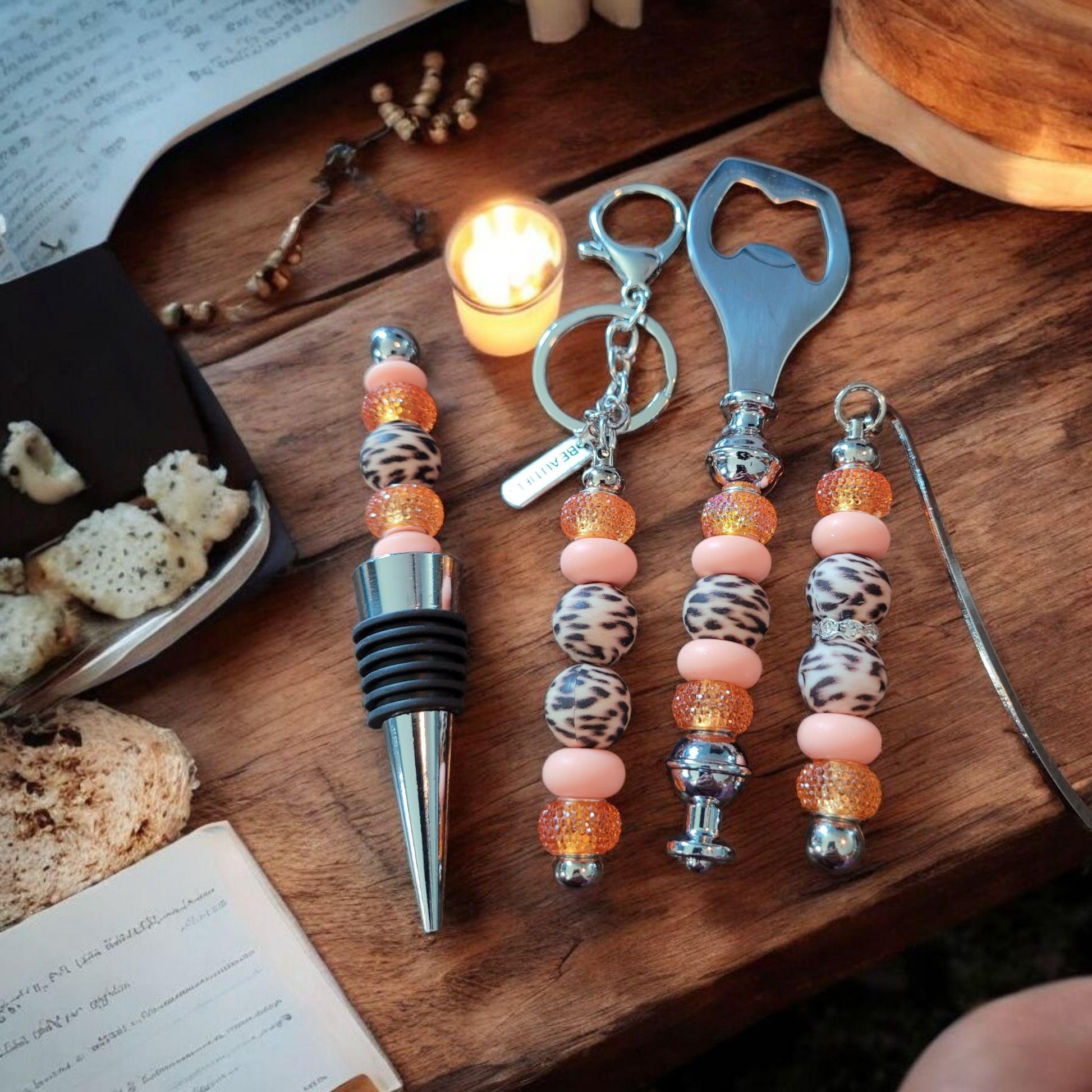Get ready to elevate your cozy weekend vibes with this beaded gift set designed to pair perfectly with your favorite journal or a good book. Featuring a chic key ring, a handy book marker, a stylish wine stopper, and a bottle opener, this set brings together practical fun and thoughtful craftsmanship like no other.